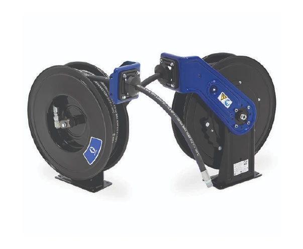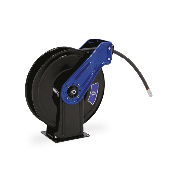 El carrete de manguera XDX para trabajos pesados de Graco cuenta con un marco de metal robusto y de doble pedestal de calibre grueso; carrete de acero; componentes sellados y un diseño giratorio innovador para un rendimiento de alta calidad en las aplicaciones más exigentes.
